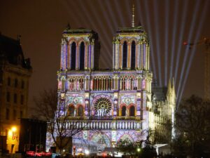 Notre-Dame Cathedral, situated on an island in the River Seine …